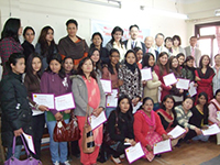 経済的に恵まれない彼女たちは、手に職をつけたいと人気のある仕事は、ネパールやインド女性が身にまとうサリー、ショール、衣服の手作業の刺繍です。付加価値が高いことからも自立の手段として期待されるものです。 地元の貧困女性が所属する支援機関や施設から推薦を受け、地元ロータリークラブとルーザー経営者から、トレーニングを遂行することが可能かどうかの面接試験を受け、自立の志の高い若い女性26名を選考、2009年5月、3名のトレーナーにより、刺繍技能習得のプロジェクトをスタートしました。 9か月に亘るトレーニングを経た彼女たちへ、2010年2月19日、芦屋ロータリークラブの小野哲嗣・近藤正・松本裕夫会員と事務局坂東博子さんとその関係者5人が現地を訪問し、ジャワラケル マンジュシュリ(Jawalakhel Manjushree)ロータリークラブ(RID3992)プリティ (Preeti Shah)会長やロータリアンと共に、修了証書と記念品を贈呈し、彼女たちの門出を祝いました。トレーニーの代表者は、訓練に励んで今日を迎えた嬉しさと、自立の希望、無料技能習得のスポンサーとなった方々とルーザー トレーニングセンターに心から感謝すると挨拶があり、喜びと笑顔の絶えない一日となりました。 経済的に苦しい女性支援組織であるCBRの推薦で、縫製技能を修了した一人であるラクシミ・サキヤさんは、「私は、貧しい家庭で小学校に行けず、そのために仕事につくことが全くできませんでした。今回の技能習得で、文字や計算も学び、自立の希望を持てました。スポンサーである人たちに是非お礼を言いたかったです。」と話してくれました。彼女の笑顔と喜びに溢れる言葉は感動的でした。 3名の教師の皆さんは、「今回の刺繍技能の習得者のレベルは過去8年の実績の中で、最高の出来栄えを持つ人たちでした。その作品の見事さは十分に評価できるもので、彼女たちが目指す市場でも、製品としてお客様の期待に応えることができる」と話しています。教師たちは、生徒たちの成果に大変満足し、指導したことに誇りを持っているように感じます。 あわせて、ルーザーで貴重なロータリー資金が有効に費消されているかの会計監査も同時に行い。適正に会計処理がされてることを確認しました。
