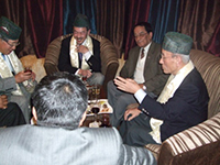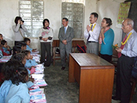 芦屋ロータリークラブの訪問者5名は、ラルリトプルから10キロほど離れたチャンピ村バガワティ小学校を訪ねました。ルーザー トレーニングセンターが以前から社会貢献活動をしている小学校のひとつです。 鉛筆・ノート・消しゴムなどの文房具を贈呈しました。小学校の1年生から3年生までの児童33名全員は、当日が国民の祝日となった「民主主義記念日」にも関わらず、朝から野山の花を集めて、訪問者にプレゼント、歓迎をしてくれました。(バガワティ小学校の卒業生が、ルーザー トレーニングセンターの技能訓練生であったことから、経済的な支援を待つ小学校と縁ができ、ルーザーは技能習得成果の作品や文具の提供を続けています。訪問者全員がアルチャナさんの通訳で、子供たちの未来を期待するとスピーチし励ましました。 教室の窓の外には授業を受けることさえできない、貧しいはだしの子供たちが興味深く覗き込んでいる姿を見て、複雑な思いもありました。 ネパール訪問の一行は、ネパールの第3292地区次期ガバナーである、ティルタ・マン・サキヤさんや、現地のロータリークラブ会長やキー・メンバーとの懇談会を設け、今後の貧困女性自立支援のプロジェクトについても話し合い、交流と懇親を深めました。 ネパール訪問参加者は、百聞は一見にしかずで、現地の実態を観ることがいかに大切なことかを理解し、得難い多くのことに遭遇し、それらは貴重な体験になったと異口同音に話していました。