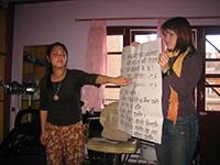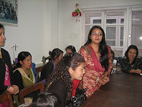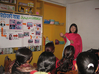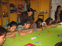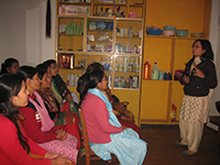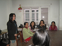 2011年11月から、9ヶ月間の刺繍技能習得のコースを始めました。これはジャワラケル・マンジュシュリ・ロータリークラブと日本の芦屋・宝塚武庫川・赤穂・淡路北・神戸東灘・三木みどり・豊岡・津・鈴鹿西の各ロータリークラブ、国際ロータリー第2680地区とロータリー財団の支援によるものです。 61名の若い女性たちが技能習得に勤しんでいます。教師やスタッフは、彼女たちの訓練計画に対する達成レベルの高さを嬉しく思っています。パタンの田舎から通っている女性たちは多く、日々一生懸命に頑張っている彼女たちの姿を見ると、とても感動します。 ルーザーで技能を学んでいる女性に対して、JICAのボランテイアの方が健康セミナーを行いました。週に一回で6回のコースを二度にわたり行いました。ミシン、美容・理容や刺繍の授業が終わってもすぐに帰らずに健康セミナーに参加し、日本人がネパール語で行う授業を真面目に聞いていました。学んだことを毎日の生活に役に立てたいと話していました。生活習慣病、栄養摂取、健康や環境のことなどいろいろな分野で幅広く知識を得たと思います。