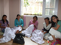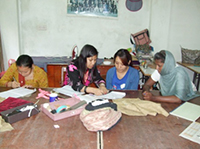 技能習得者の女性の自立支援にと、パタンの女性実業家プリテイー・シャーさん(ジャワラケル・マンジュシュリRC創立会長)からネパールの特産品である綿製品のステッチング製品の依頼があり5人の女性が励んでいます。1枚当たり100ルピーで、1日2.5枚程度の作業ですが、彼女たちの家計を助ける手立てになって明るく働いています。製品に要求される品質は高いのですが、依頼主はその出来栄えに満足していると聞きました。