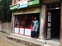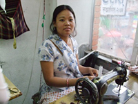 土砂降りの豪雨で、道路は水路に変わる中を、パタンの繁華街にあるフルマヤさんが働いている縫製店を訪ねました。停電の中、信じられないほど暗い自家発電の環境の作業場で、視力の優れているネパール女性はミシンを踏み、縫製作業をしています。婦人服1着あたり70ルピーで、ソニタさんの1ヶ月の収入は6000ルピー(約5,400円)程度で、4人家族の家計は楽になりました。店の女性主人はルーザーに理解があり、貧しい女性の自立にと幾人もの生徒を紹介してくれています。