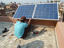 ネパールはまだまだたくさんの問題を抱えています。政治が安定してないのが一番の問題ですが、毎日の停電がトレーニングセンターのスタッフや生徒さんにとって一番の苦労の元でした。電気がないため真っ暗の部屋で技能を取得しないといけない状況でした。数年前に電池のバックアップを設置しましたが、停電時間が増えて充電できないため、また費用がかかりますがもう少し大きいな電池を買い替えたりしました。しかし乾季になると毎日17時間の停電にはせつない状態となっていました。このたびソーラーの設置は私達の長い間の希望でしたが、資金的に高額で無理なお話でありました。皆様のおかげで今は、あかりは希望につながりました。