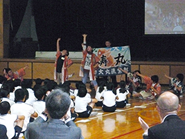 このたび、当時の引率責任者でいらした教頭先生が、現在、大川小学校の校長に着任されていることから、そのご縁で大川小学校の児童をお招きすることとなったものです。(右写真は2011年7月の模様)